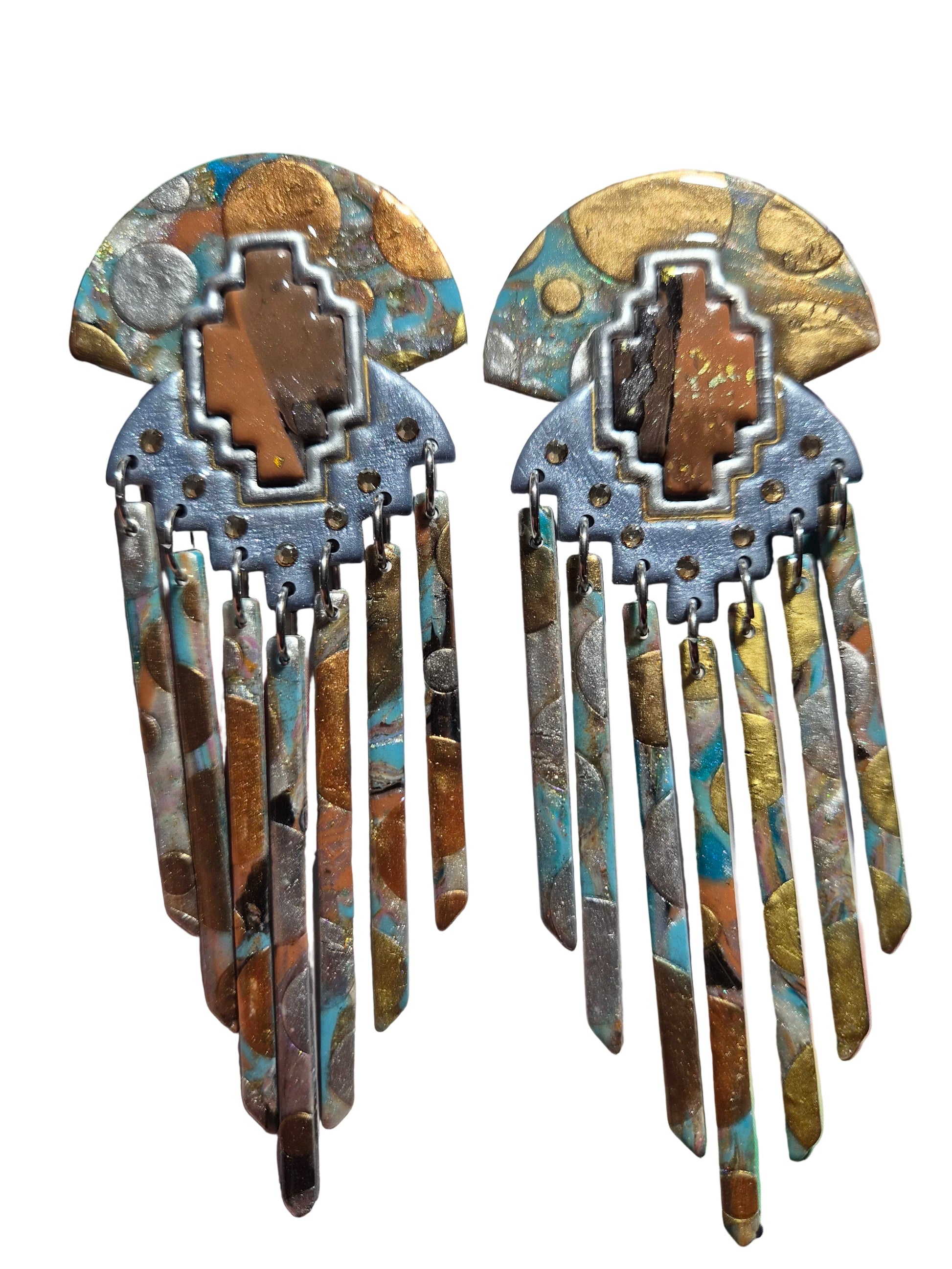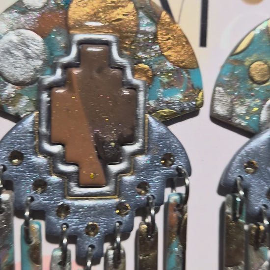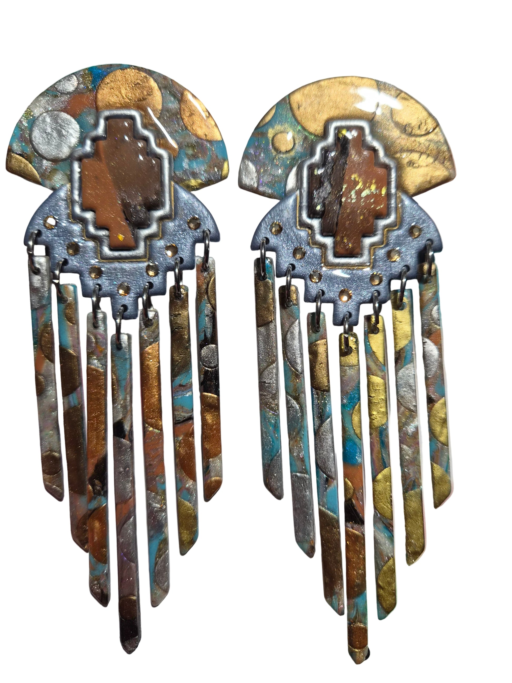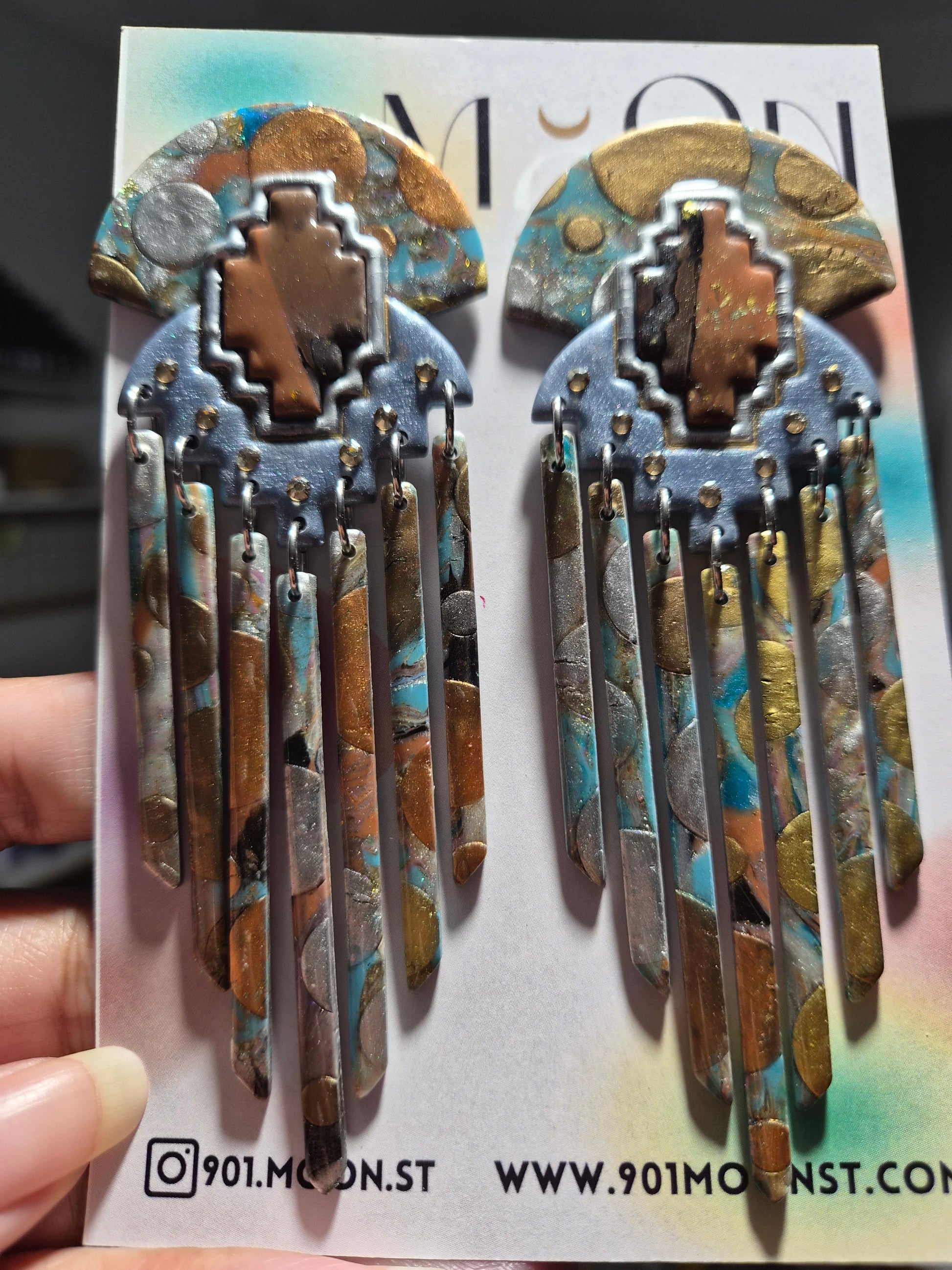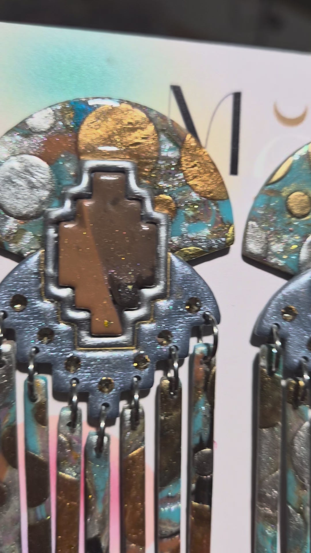 Crafted with hand-layered polymer clay, metallic pigments, and data-core detailing, Strings is where ancient artifact meets algorithm. Designed to shift and shimmer with movement, they channel both ceremonial rhythm and cyber precision.